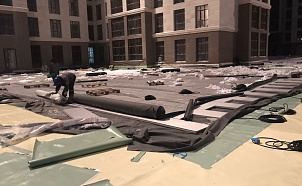 Выполнены смещения соседних рулонов. Выполнены торцевые нахлесты, боковые нахлесты, вытек вяжущего, согласно рекомендациям, изложенных в инструкции