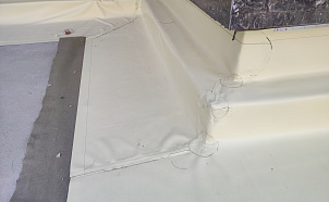Угол выполнен неверно, отсутствует латка из неармированной мембраны и скругление углов.