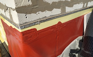 Примыкание заведено на горизонтальную поверхность, либо зафиксировано с помощью прижимной рейки, с нанесением герметика в отгибе. Вытек вяжущего не превышает допустимых значений.