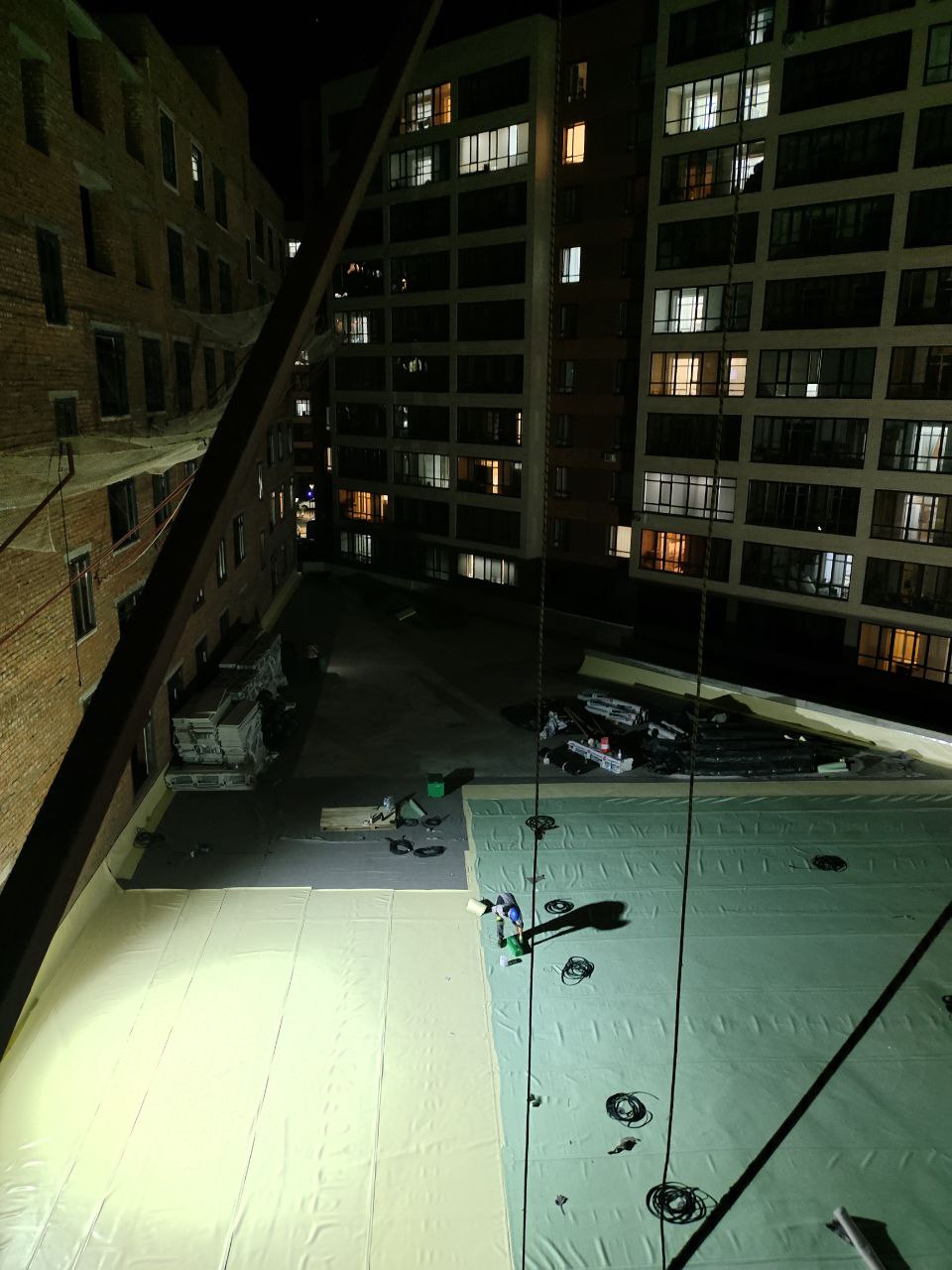 Мембрана на парапетной части здания не натянута, присутствуют провисания и складки.